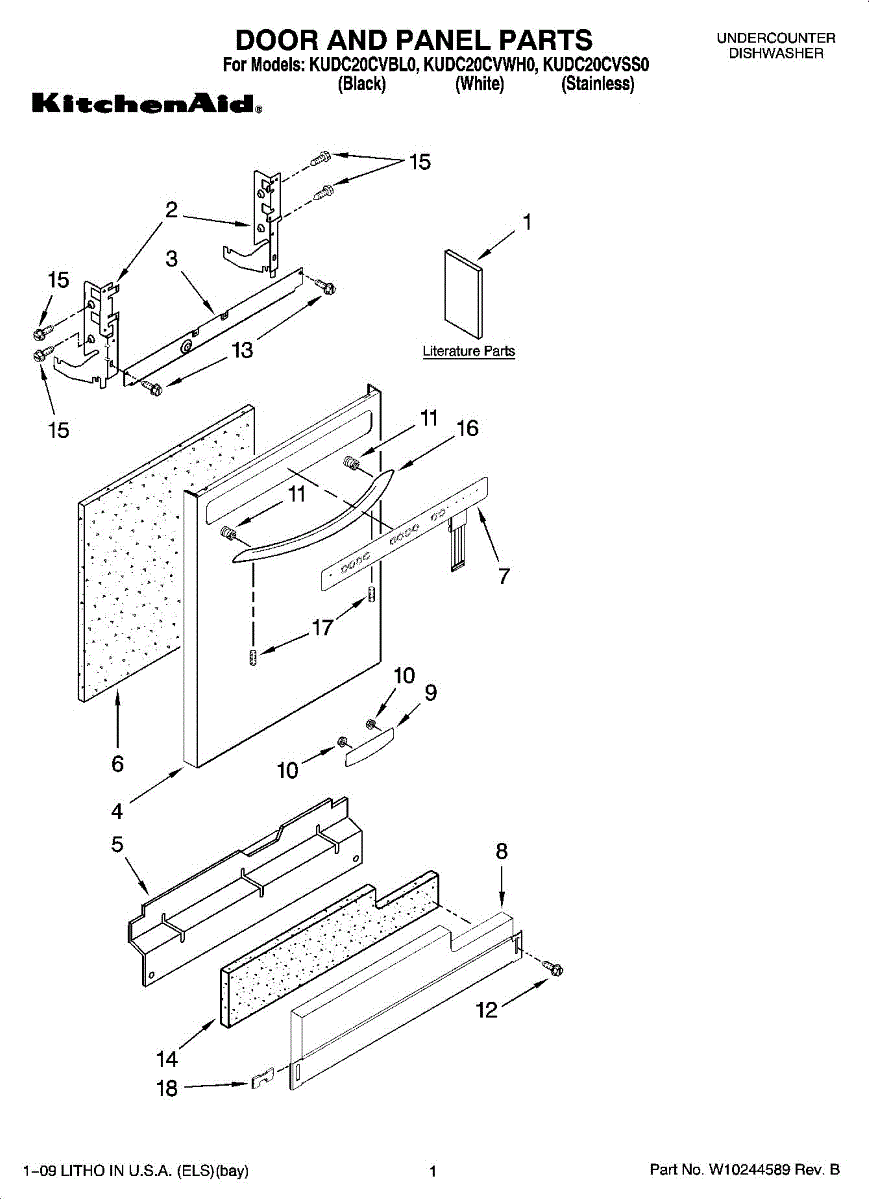 Color: Black. Includes Items door isulation, nameplate, (2)nuts & (2)mounting studs. For white use WPW10078000. For stainless use WPW10137621