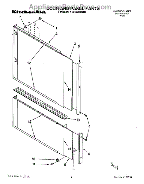 Parts for Kitchenaid KUDD230YWH0: 01 - Door And Panel Parts
