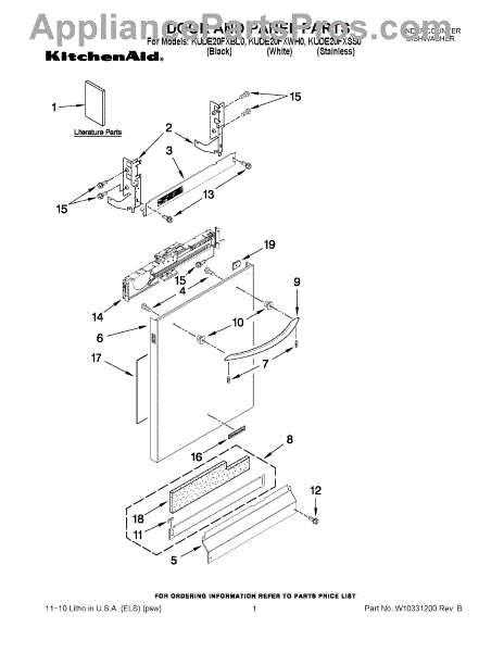 Parts for Kitchenaid KUDE20FXSS0: 01 - Door And Panel Parts