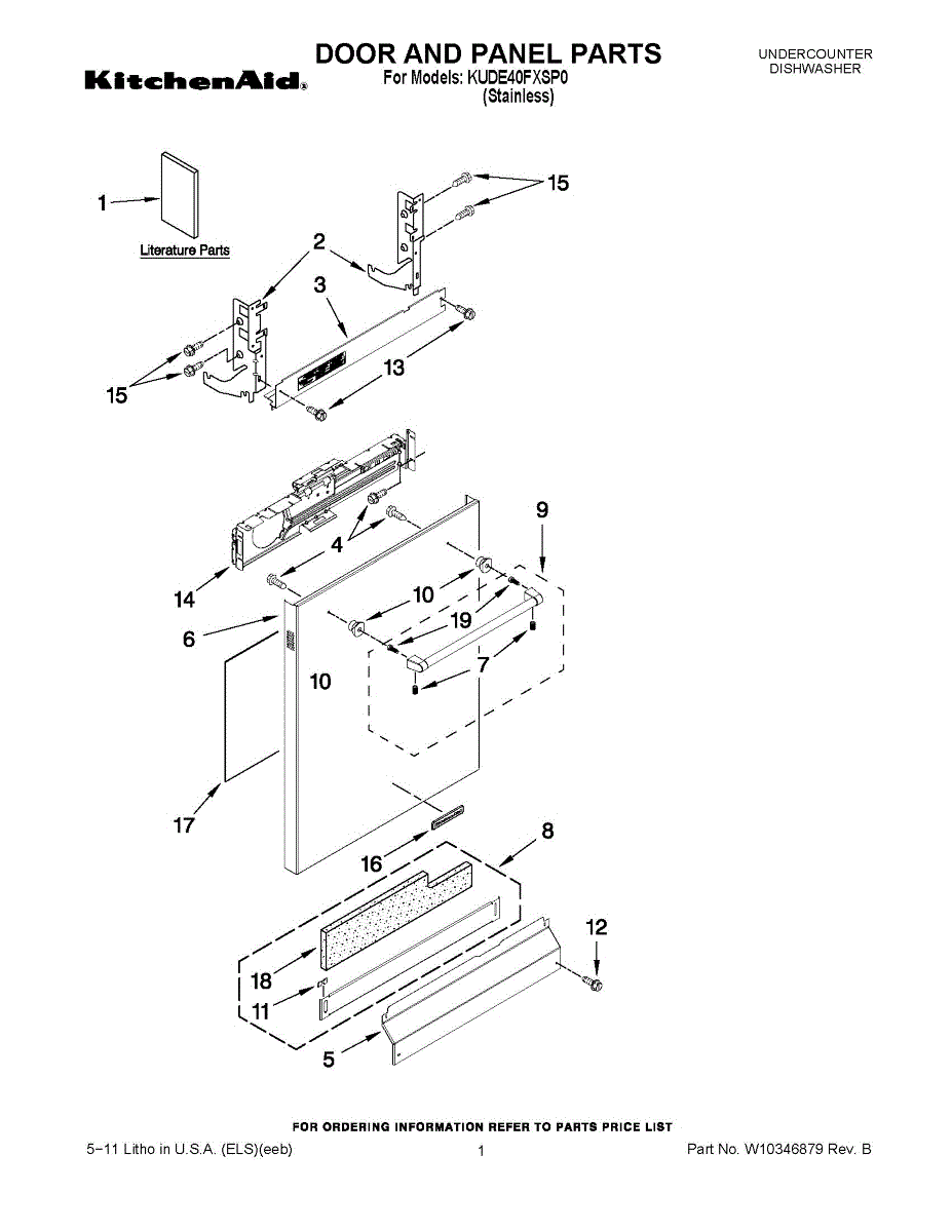 Replacement dishwasher panel that covers and protects internal components. Install to replace a dented, cracked, worn, or missing panel piece.