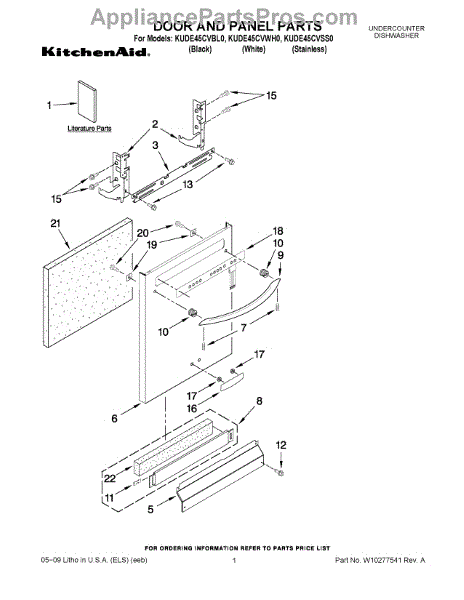 Color: Black. Includes Items door isulation, nameplate, (2)nuts & (2)mounting studs. For white use WPW10078000. For stainless use WPW10137621