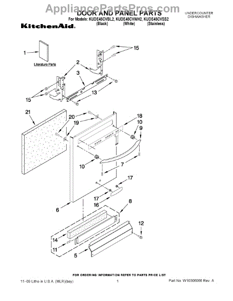Color: Black. Includes Items door isulation, nameplate, (2)nuts & (2)mounting studs. For white use WPW10078000. For stainless use WPW10137621