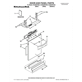 The Panel (BLK) is an OEM part for Whirlpool dishwashers. This black exterior panel is designed to provide a sleek and durable front surface for the dishwasher, enhancing its appearance and protecting internal components.