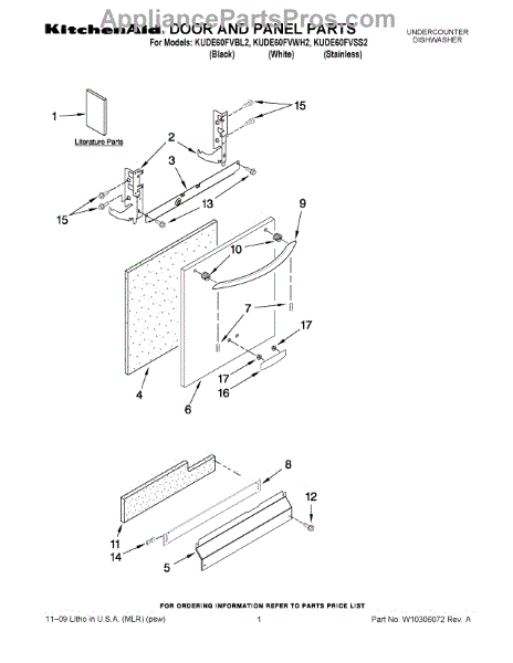Parts for Kitchenaid KUDE60FVBL2: 01 - Door And Panel Parts
