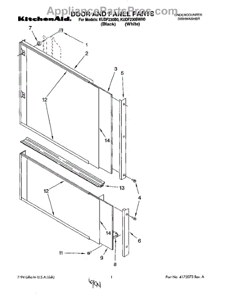 Parts for Kitchenaid KUDF230B0: 01 - Door And Panel Parts