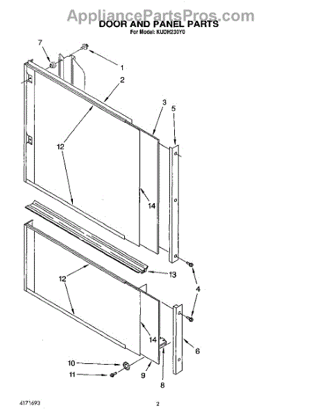Parts for Kitchenaid KUDH230Y0: 02 - Door And Panel Parts