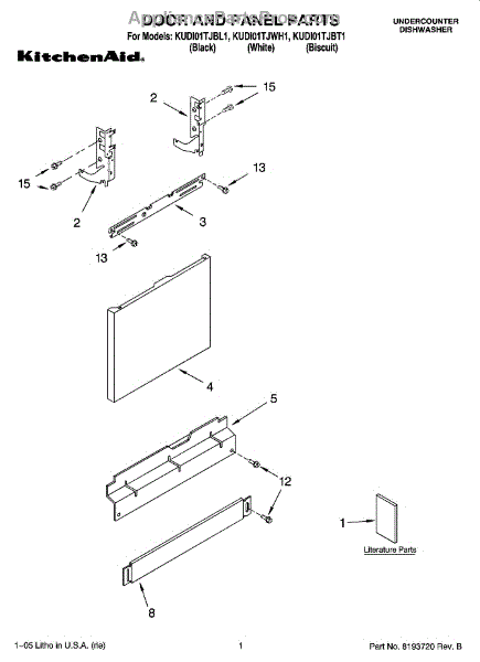 Color: Biscuit. Screw for lower toe panel. For black screw use WP302868, for white screw use WP3400836.