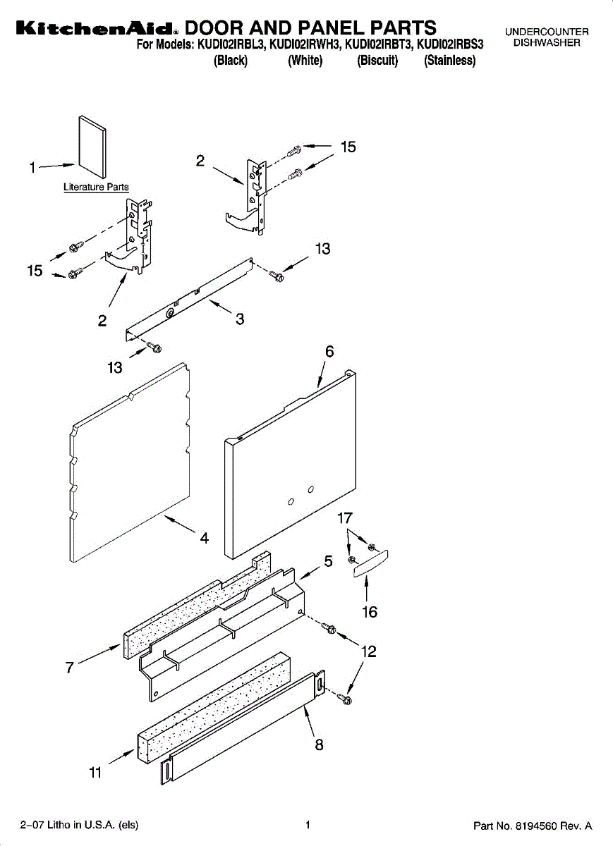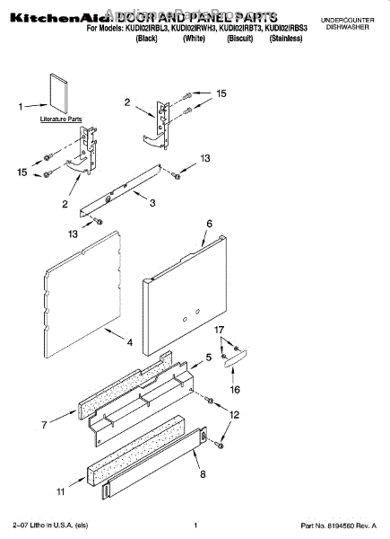 Outer door panel for dishwashers. Installs on the front of the dishwasher door. Replace if scratched, dented, or to change color finishes.