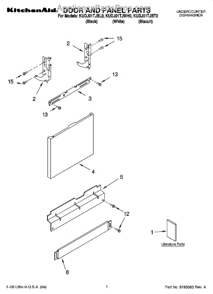 Color: Biscuit. Screw for lower toe panel. For black screw use WP302868, for white screw use WP3400836.