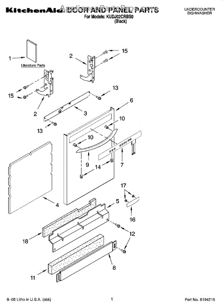 Parts for Kitchenaid KUDJ02CRBS0: 01 - Door And Panel Parts