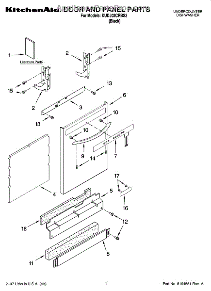 Parts for Kitchenaid KUDJ02CRBS3: 01 - Door And Panel Parts