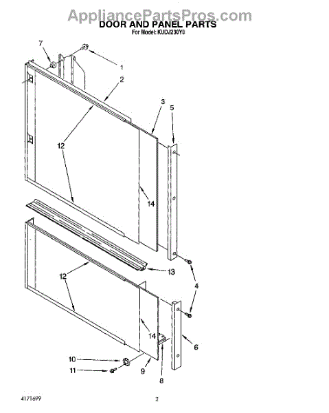 Parts for Kitchenaid KUDJ230Y0: 02 - Door And Panel Parts