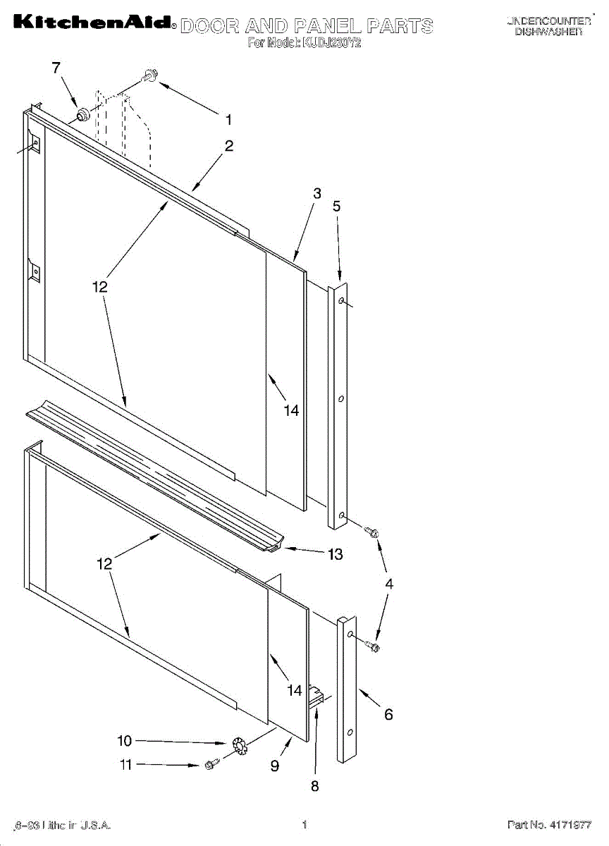 Parts for Kitchenaid KUDJ230Y2: 01 - Door And Panel Parts