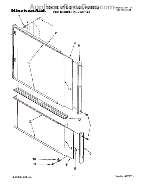 Parts for Kitchenaid KUDJ23HY3: 01 - Door And Panel Parts
