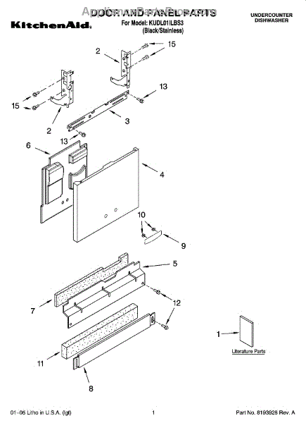 Parts for Kitchenaid KUDL01ILBS3: 01 - Door And Panel Parts