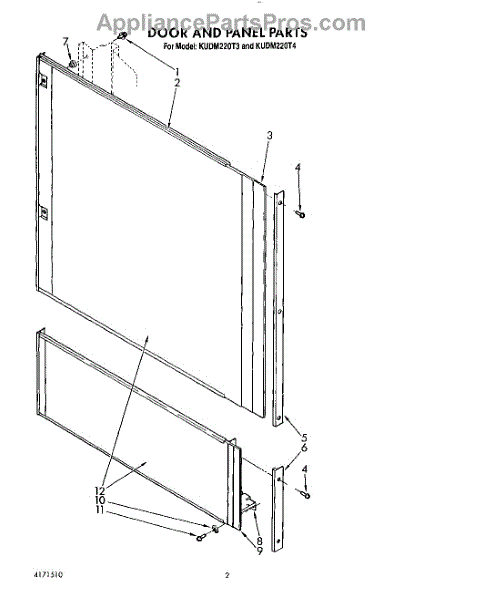 Parts for Kitchenaid KUDM220T4: 02 - Door And Panel Parts