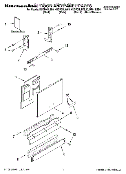 Parts for Kitchenaid KUDP01ILBS6: 01 - Door And Panel Parts