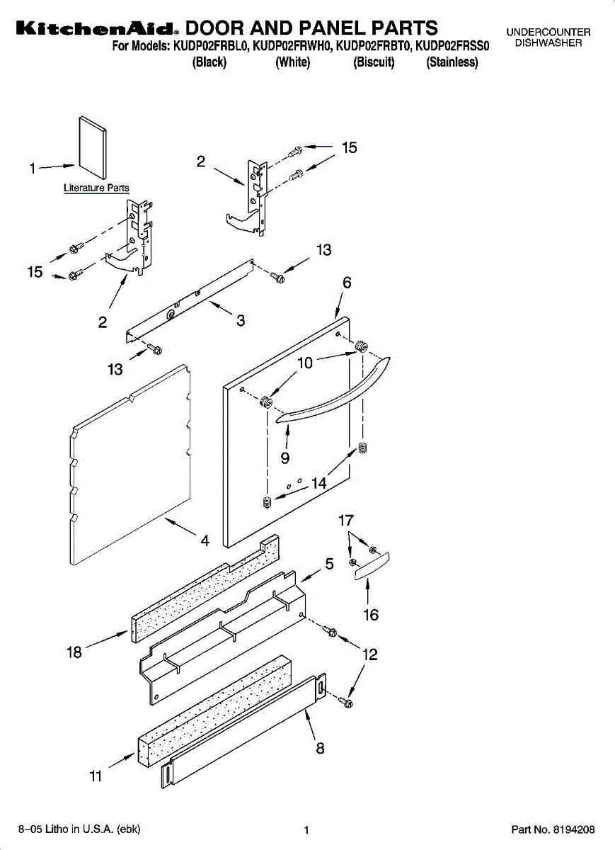 Replacement dishwasher panel that covers and protects internal components. Install to replace a dented, cracked, worn, or missing panel piece.