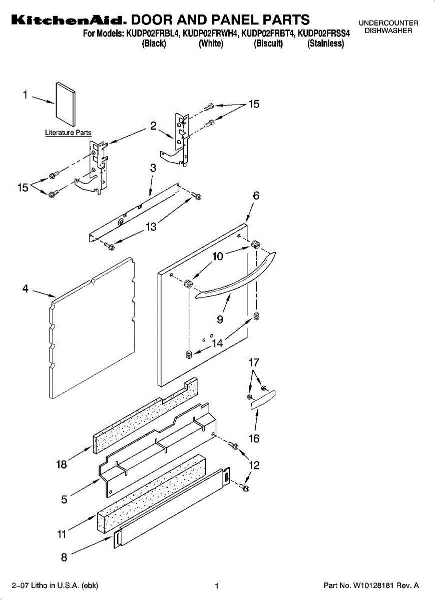 Replacement dishwasher panel that covers and protects internal components. Install to replace a dented, cracked, worn, or missing panel piece.