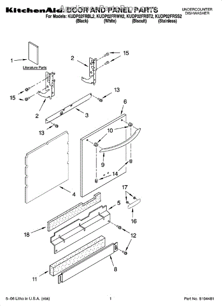 Parts for Kitchenaid KUDP02FRBT2: 01 - Door And Panel Parts