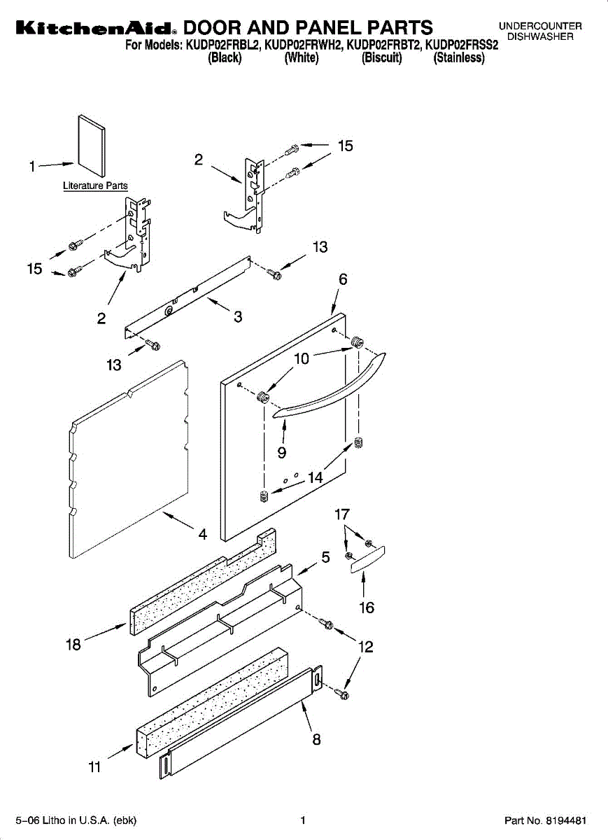 Color: Black. Screw for lower toe panel. For Biscuit screw use 3400865, for white screw use WP3400836.