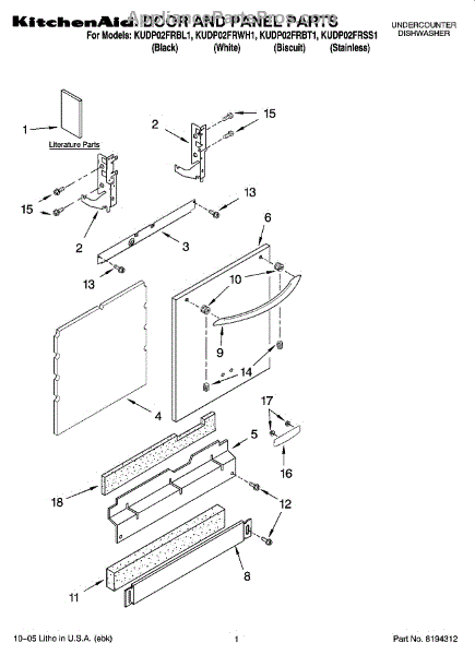 Parts for Kitchenaid KUDP02FRWH1: 01 - Door And Panel Parts