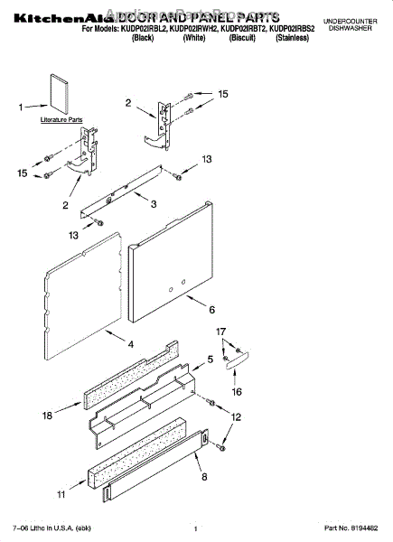 Parts for Kitchenaid KUDP02IRWH2: 01 - Door And Panel Parts