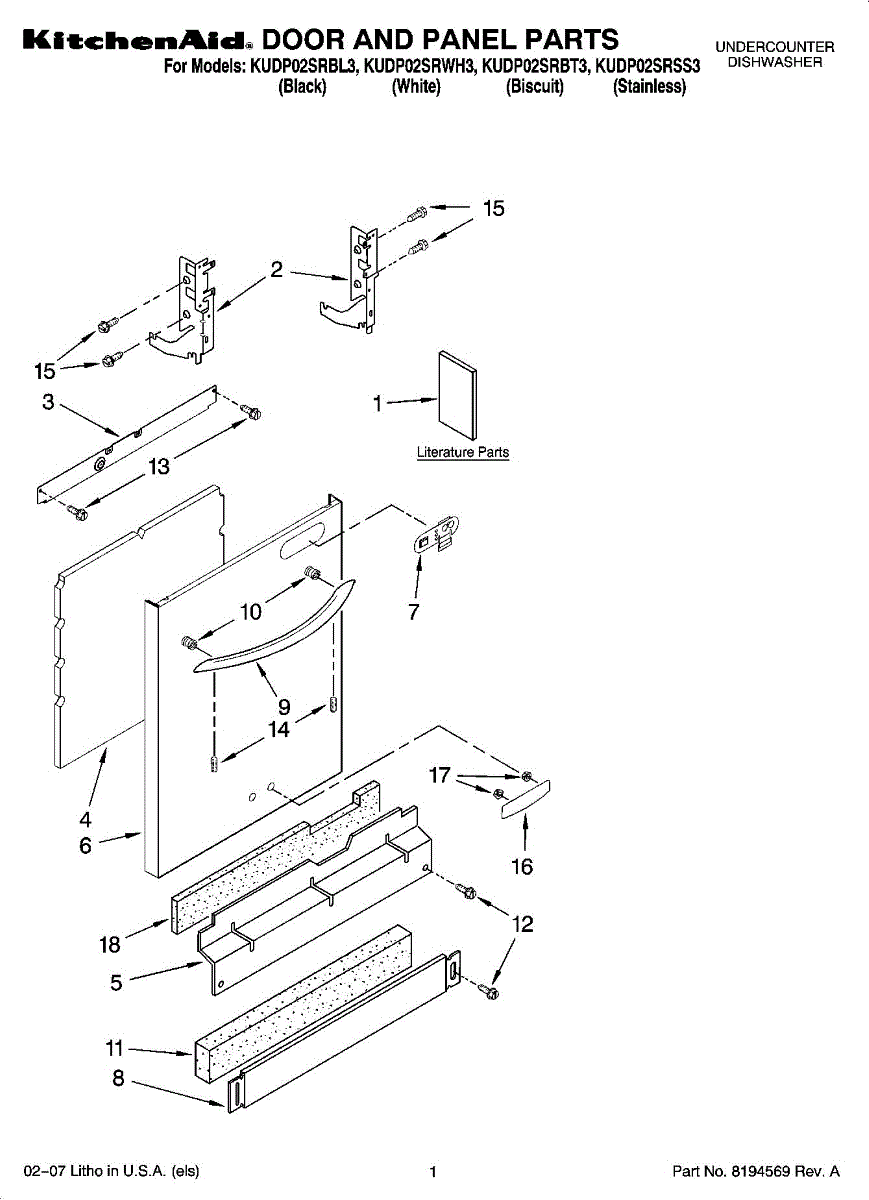 Parts for Kitchenaid KUDP02SRBT3: 01 - Door And Panel Parts