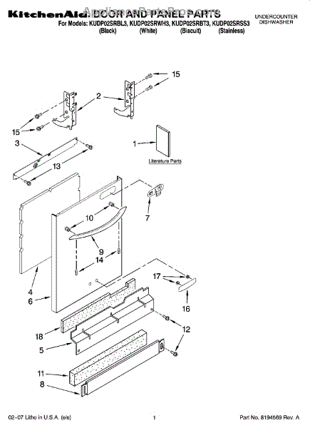 Parts for Kitchenaid KUDP02SRWH3: 01 - Door And Panel Parts
