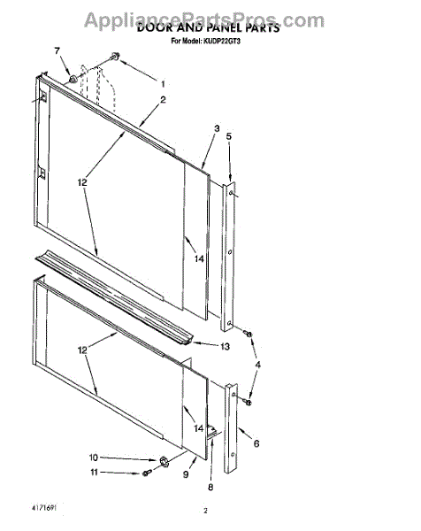 Parts for Kitchenaid KUDP22GT3: 02 - Door And Panel Parts