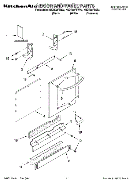 Parts for Kitchenaid KUDR02FSWH3: 01 - Door And Panel Parts