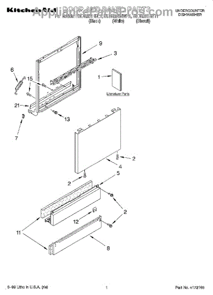 Parts for Kitchenaid KUDR25SHBT1: 01 - Door And Panel, Literature Parts