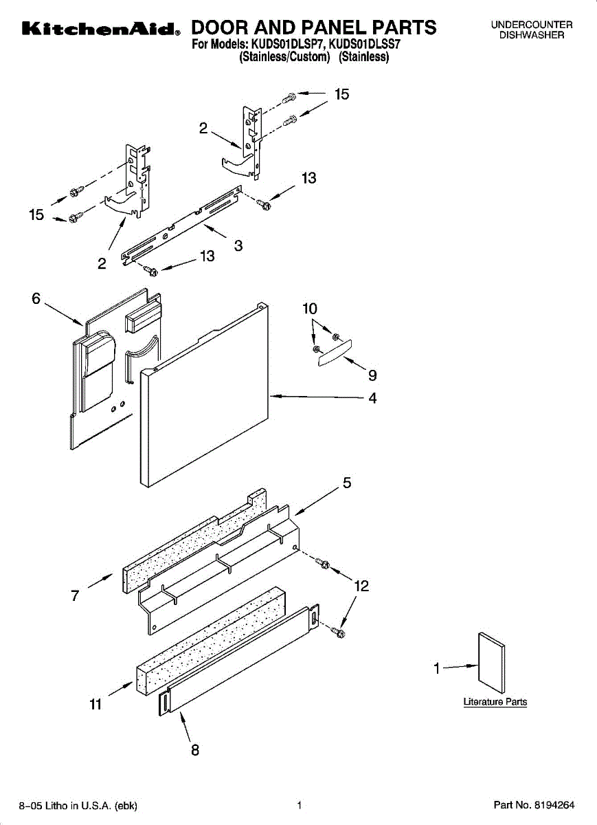 Parts for Kitchenaid KUDS01DLSS7: 01 - Door And Panel Parts