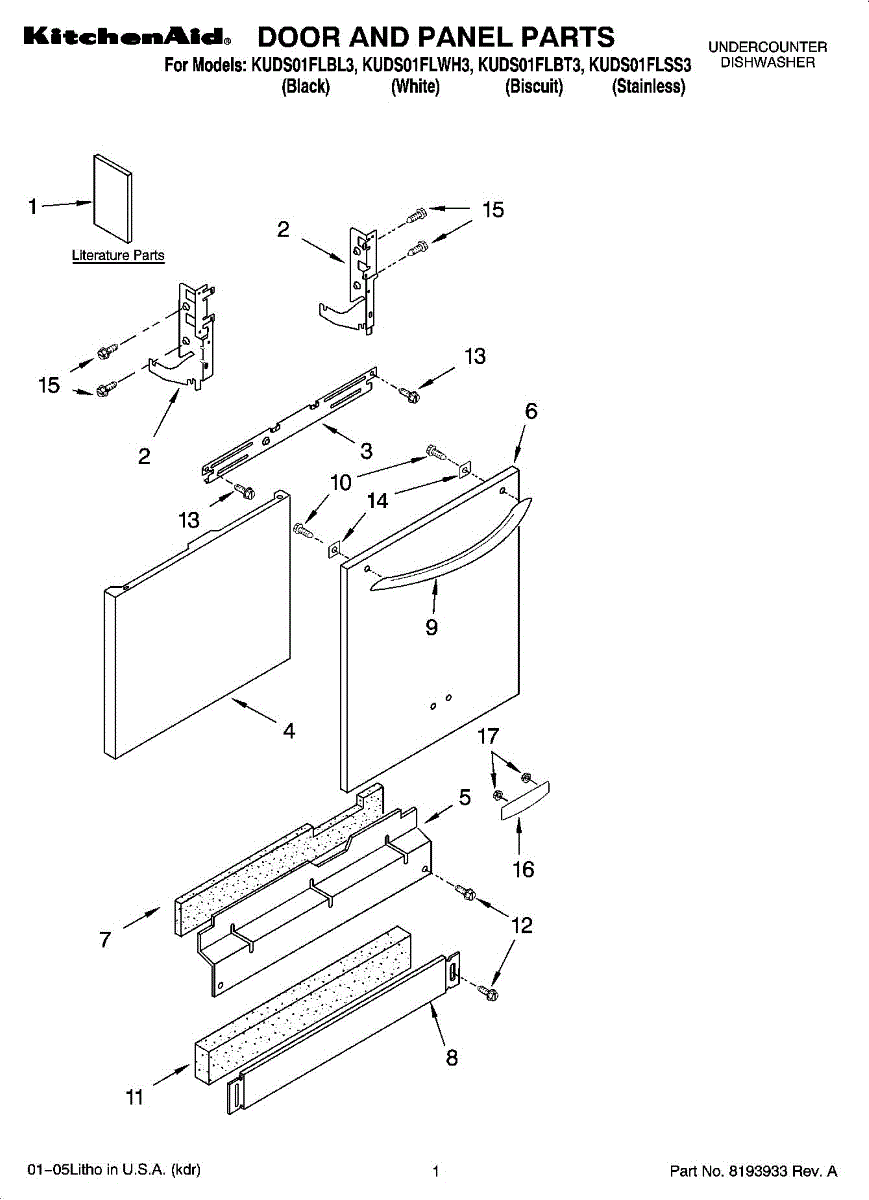 Biscuit-colored front panel with nameplate for your dishwasher. Replaces cracked, scratched, or discolored exterior panels. Refreshes appearance.