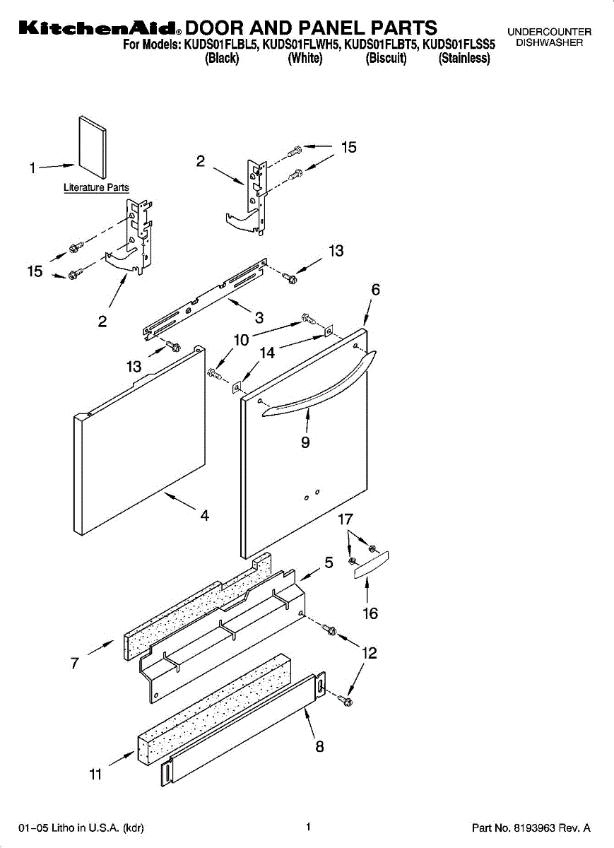 Color: Black. Screw for lower toe panel. For Biscuit screw use 3400865, for white screw use WP3400836.