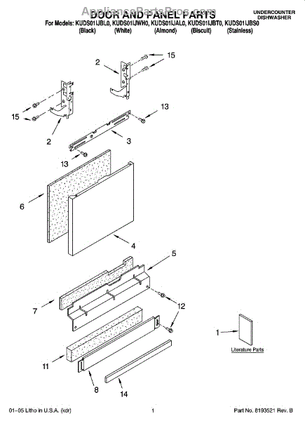Color: Biscuit. Screw for lower toe panel. For black screw use WP302868, for white screw use WP3400836.