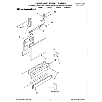 Parts for Kitchenaid KUDS01ILWH6: 01 - Door And Panel Parts