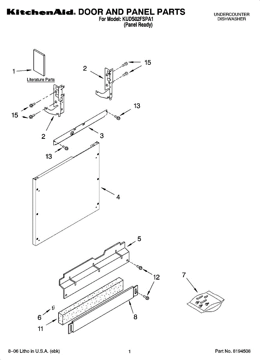 Parts for Kitchenaid KUDS02FSPA1: 01 - Door And Panel Parts