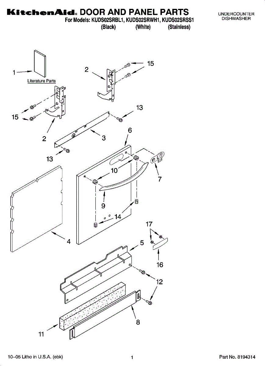 Replace your dishwasher's cracked, dented, or discolored front door panel. This outer panel installs on the exterior door for a fresh appearance.