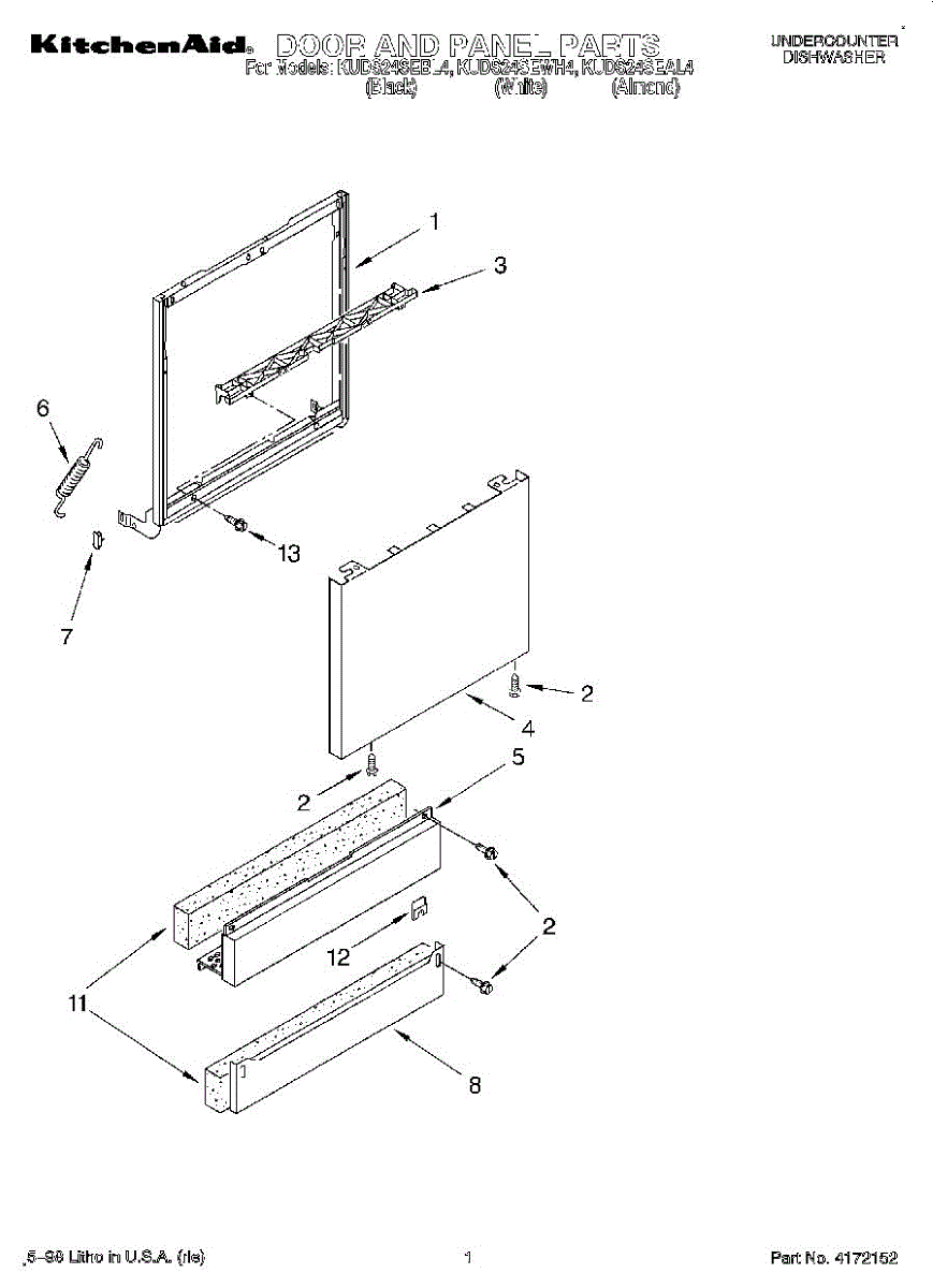 Counterbalance spring that allows your dishwasher door to open and close smoothly. Replace if door drops too quickly, won't stay open, or spring is broken.