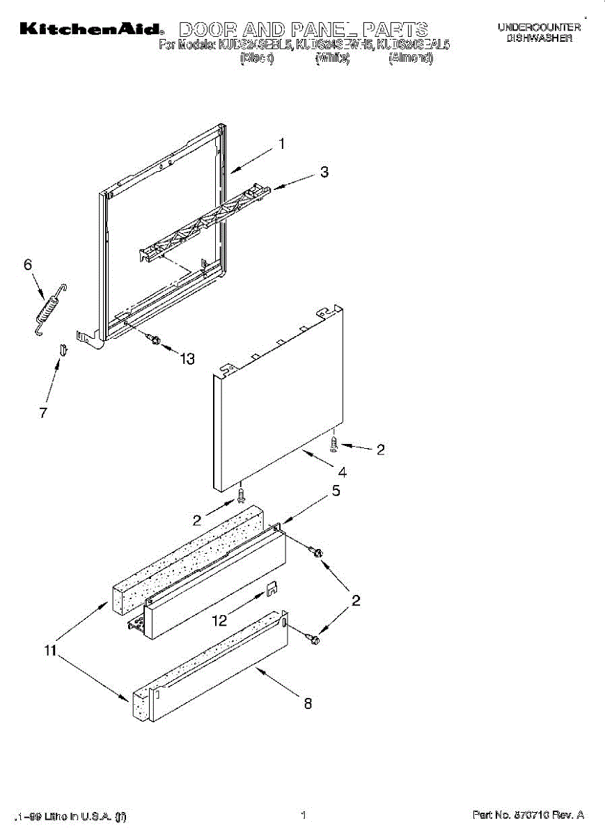 Parts for Kitchenaid KUDS24SEBL5: 01 - Door And Panel Parts