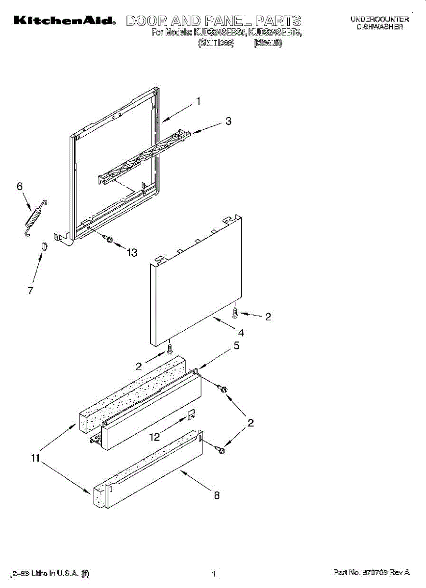 Counterbalance spring that allows your dishwasher door to open and close smoothly. Replace if door drops too quickly, won't stay open, or spring is broken.