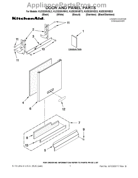 Parts for Kitchenaid KUDS30IVBL3: 01 - Door And Panel Parts