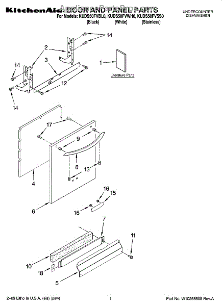 Parts for Kitchenaid KUDS50FVBL0: 01 - Door And Panel Parts