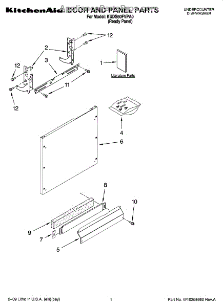 Parts for Kitchenaid KUDS50FVPA0: 01 - Door And Panel Parts
