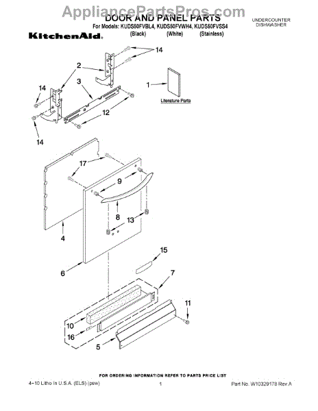 Parts for Kitchenaid KUDS50FVWH4: 01 - Door And Panel Parts