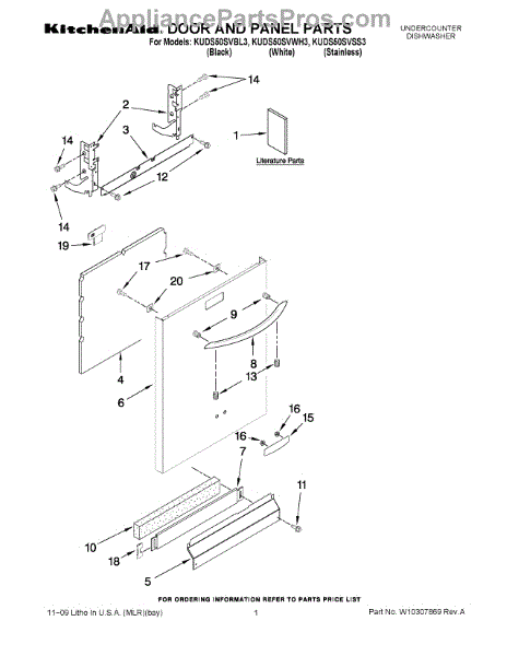 Parts for Kitchenaid KUDS50SVBL3: 01 - Door And Panel Parts