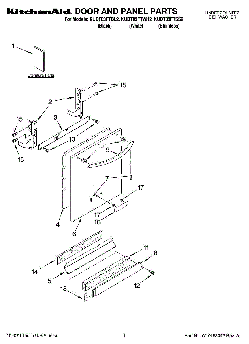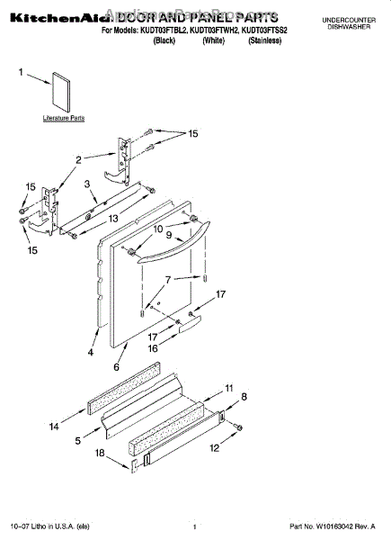 Parts for Kitchenaid KUDT03FTWH2: 01 - Door And Panel Parts
