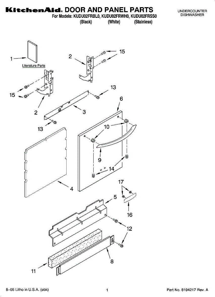 Parts for Kitchenaid KUDU02FRSS0: 01 - Door And Panel Parts