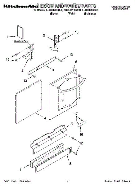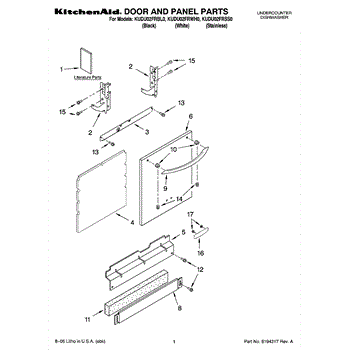 Parts for Kitchenaid KUDU02FRWH0: 01 - Door And Panel Parts